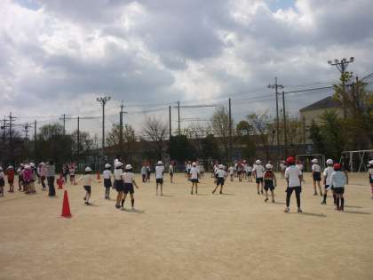 4年生は全員でスリスビーを使って「ドッチビー」をしました。
