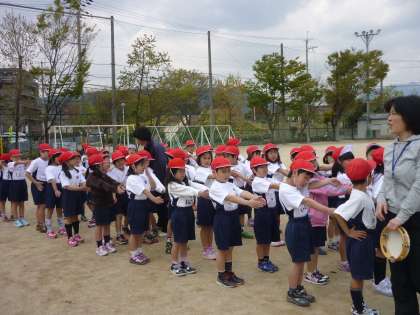 広い運動場で走ったり,並んだり,歩いたりしました。