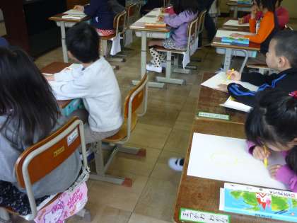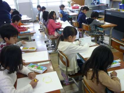1年生は図工の時間にチューリップの絵を描きました。