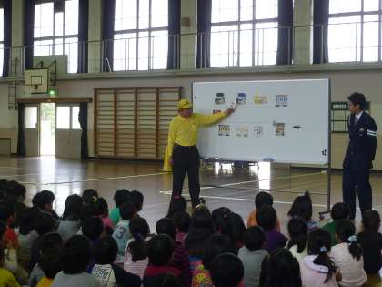 4月17日(水),西京署交通課,西京区役所町づくり推進課,桂川交通安全推進会,桂川小学校PTAの方々にお世話になり,1年生対象の「交通教室」を行いました。