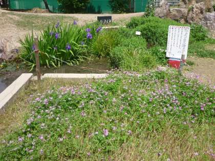 ひょうたん池には,レンゲの花やショウブの花がきれいに咲いています。