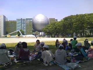 名古屋市科学館で見学後,広場で昼食をとりました。