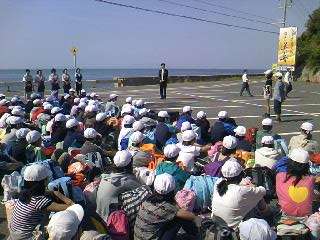 お世話になった旅館の人にお礼を言って全員元気に出発しました。