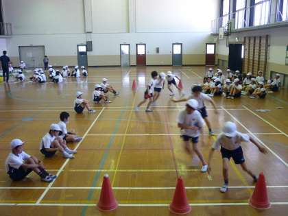 体育館では,反復横とびや上体起こしなどをしました。