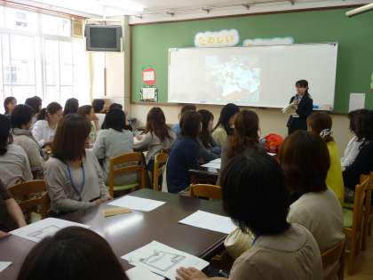 栄養教諭から「学校給食と子どもの食生活について」の話をし,子どもたちが給食の準備をしているところを見学していただきました。