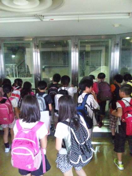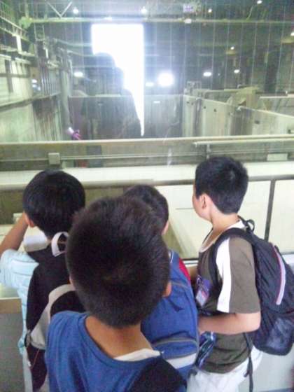 ごみピットの中のごみの多さに驚きつつ,クレーンでごみを持ち上げる作業などを興味深く見学しました。