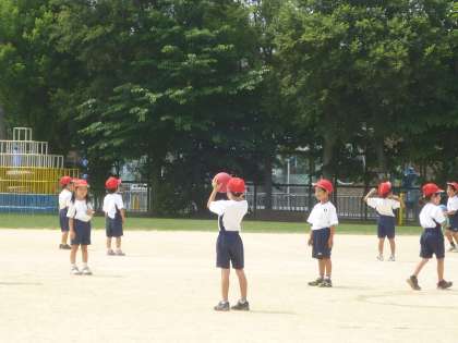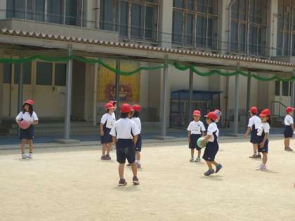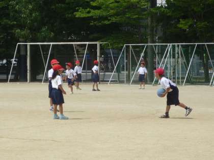 今日はまず,グループでボールを投げたり受けたりする練習をしました。