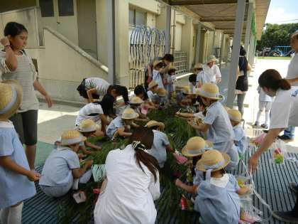 7月1日(月),かつらがわ保育園の子どもたちが笹竹と笹かざりを持って,桂川小学校に来てくれました。