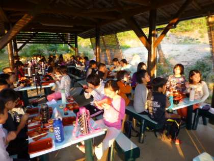 みんなでわいわい楽しく食事をしている間に太陽が西の空に沈んでいきました。