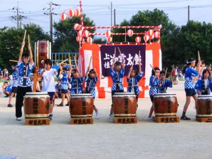 御霊太鼓の演奏はとても迫力がありました。また,華やかなダンスクラブの発表も夏まつりを盛り上げてくれました。