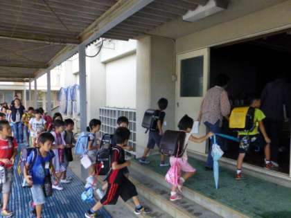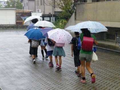 台風シーズンとなり,いつ「暴風警報」が出るか分かりません。ご家庭でもテレビ等のニュースに気をつけていただきますようお願いします。