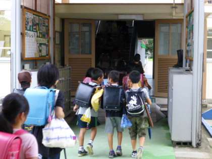 「京都市に暴風警報が発令」されたという想定で,避難訓練を実施しました。実際に「大雨警報」が出されている中での訓練であったためか,子どもたちも真剣に取り組んでいました。「学校待機児童」と「町別で集団下校する児童」とに分かれて,それぞれの場所に集合して訓練は終了しました。その後,集団下校をしました。