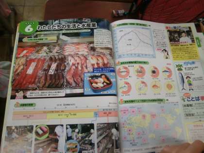 今日は,資料を使いながら,日本の水産業の様子について,グループで話し合いました。「大好きなエビは輸入がほとんど!」と改めて,日本の食料状況を考えていました。