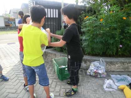 昨日の児童集会で,「牛乳パック・アルミ缶回収」のお知らせがありました。今日は,環境委員のお友達が,正門と西門で回収してくれました。ありがとうございます!