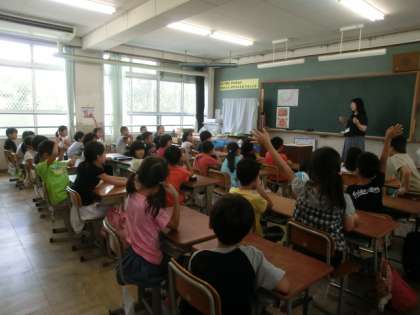 5時間目の授業参観の学習は「となりの国のことをしろう」です。地図を見ると,韓国は日本に最も近い国であることに気づけました。食べ物や着る物など,知っていることを発表しながら,韓国の文化にふれることができました。