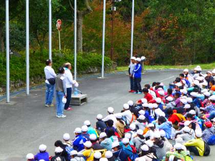スコアオリエンテーリングが終わったころ、4名の地域ボランティアの方が到着されました。毎年お世話になっている桂川小学校運営協議会「ふれあい体験部会」の皆さんです。この後の「カレーづくり」から明日の夕方まで子どもたちをサポートしていただきます。