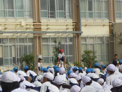 係りの子どもたちのお手本を見ながら,「全校体操」の練習もしました。