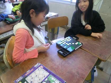 友達と楽しく対戦しています。「今度は勝つ!」といきごんでいました。