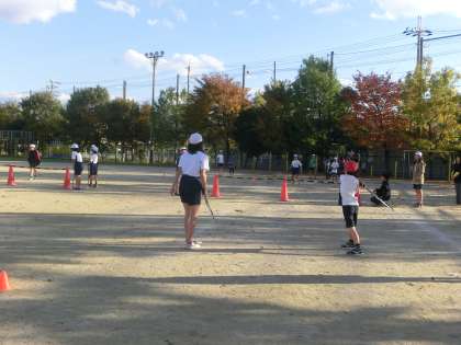 コートの取り方を工夫して,たくさんゲームができるようにしています。狭いぶん,結構難しいですね。