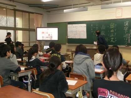 社会・理科・国語の授業です。歴史についての話を興味津々で聞いていました。