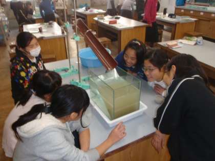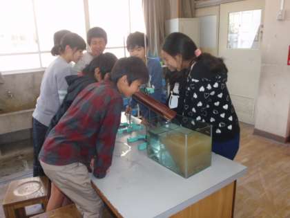 昨日の実験を少し改良して,砂の量を増やすとうまく地層を作ることができました。