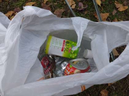 お菓子の袋,ダンボール,割れた瓶,ペットボトルなどさまざまなゴミがたくさん捨ててあって,掃除の時間だけでは拾いきれないほどでした。