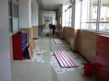 冬休みの間から,教職員は明日の授業再開に向けて,施設・設備の塗替えや学習の準備等を着々と進めています。