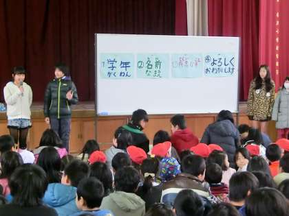 3月7日(金)中間休み,「あいさつじゃんけんゲーム」の集会活動がありました。計画委員会の子どもたちが「みんな仲良く」「あいさつができる」ようにと考えて準備した集会です。今日は,フレンドリーのDグループが体育館に集まりました。