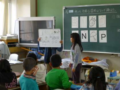 算数「対称な図形」の学習を見ていただきました。今日は「点対称」な図形についてその意味を学習しました。