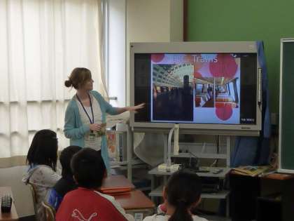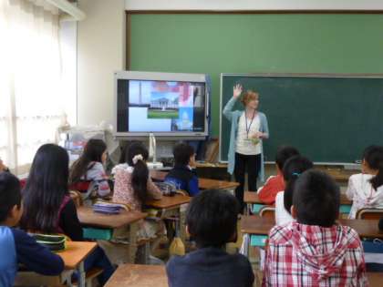 5年生は,初めてALTを迎えての英語活動をしています。今日は,ALTのウェンディ先生の自己紹介をみんなで聞きます。英語での自己紹介,どこまでわかったかな?