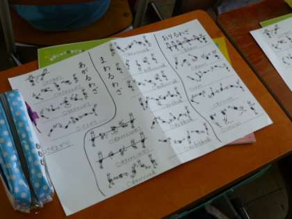 体育の学習カードをもとに,それぞれの技がどんな技なのかVTRで確かめています。