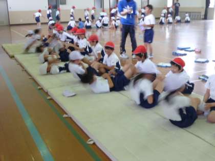 4年生も,3校時から「新体力テスト」を始めています。4つの体育館種目に挑戦です。午後からは運動場種目に取り組みます。