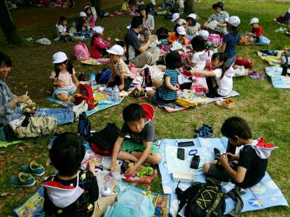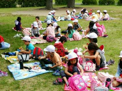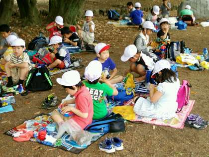 いっぱい歩いて、いっぱい遊んで、おなかもペコペコ。