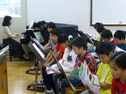 6年生の音楽は,スクールサポーターの中村先生に教えていただいています。