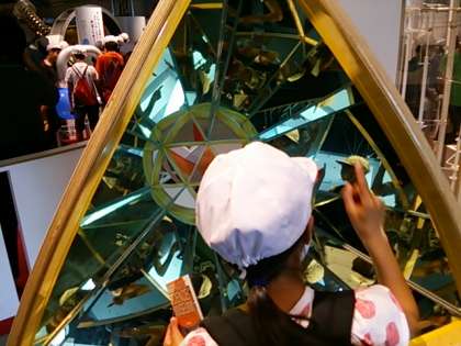 まずは不思議のひろばで、科学の不思議を体感します。