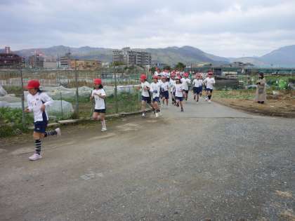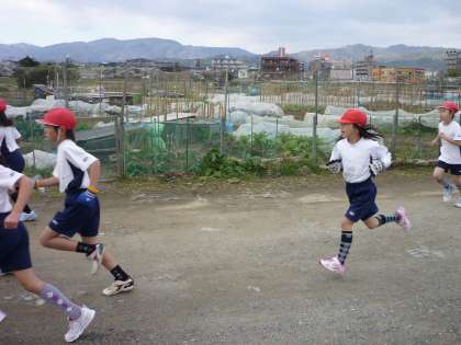 今日は待ちに待った「持久走大会」です。寒さに負けず,どの子も力いっぱい走っています。保護者の方の応援も,大きな力となったと思います。