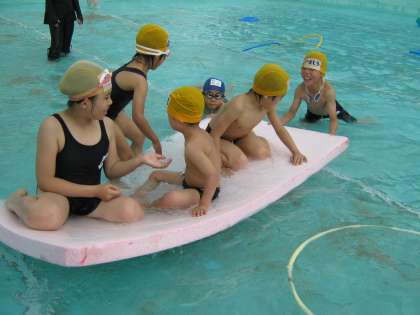 大きな輪や大きなビート板を使って
