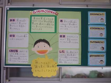 保健室前にからだのチェックポイントについての掲示をしています。