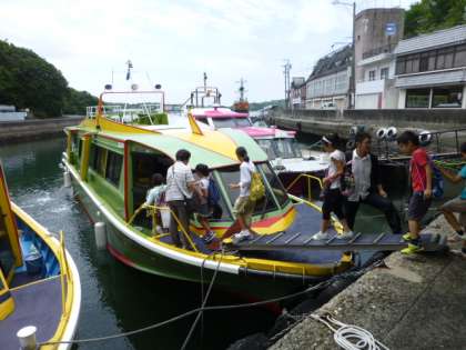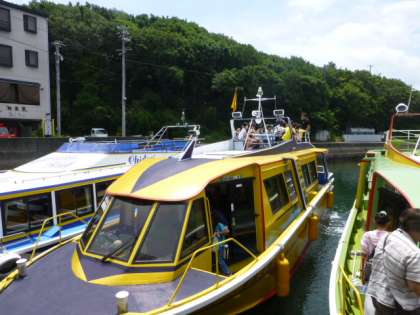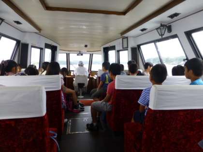 賢島に到着しました。ここから船に乗り換えてみさきの家へ向かいます。船内の座席と外の座席を順番に交替していきます。