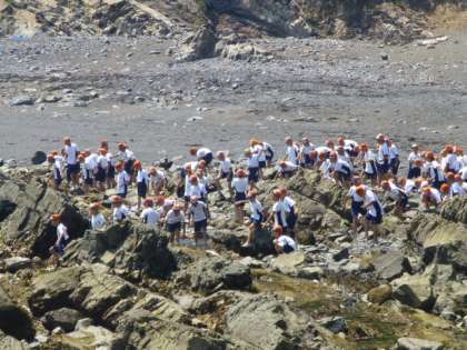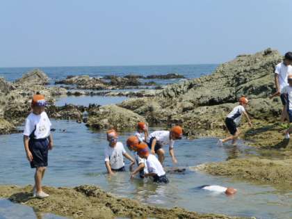 なんのためらいもなく海に入って生き物を探す子、こわごわ潮だまりを覗き込む子、どの子どもたちの目も生き生きと輝いていました。