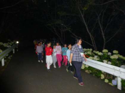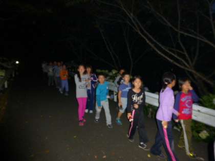 2日目最後の活動は「きもだめし」・・・のはずが、4年生には精神的ダメージがあまりに大きいということで、急遽「ナイトハイク」に変更しました。簡単に言うと「夜のお散歩」です。
