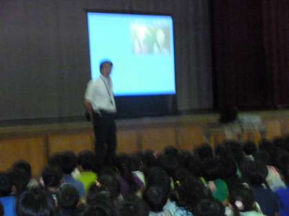 校長先生からは,「宇宙兄弟」の原作者である小山宙哉さんが小学生だった頃の話を聞きました。また伊藤先生からは,「学習や遊びのルールを思い出して,けじめのある生活にしよう。」「これまで取り組んできた挨拶を少しレベルアップして,いつも見守ってくださっている地域の方々や学校へ来られたお客さんにも,進んで挨拶できるようになろう。」という話がありました。