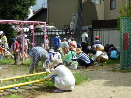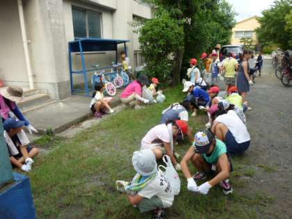 PTAの方からもたくさんご参加いただき,子どもたちに混じって,草抜きや上桂公園のゴミ拾いをしていただきました。ご協力,ありがとうございました。