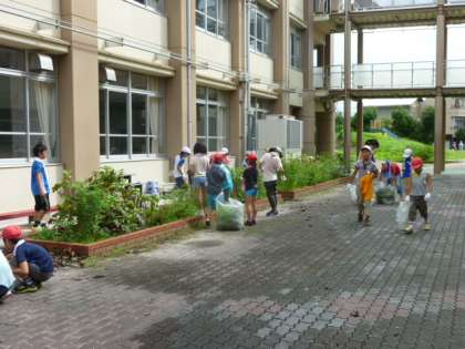 今年は雨が多かったせいか,草の伸びがよかったように思います。抜いた草や拾った落ち葉は一か所に集めて,花壇の堆肥にします。