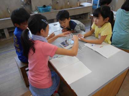 5年生の理科では、もののとけ方の学習をはじめました。水に食塩を加えると、重さはどうなるのでしょうか? 前の時間に習った、メスシリンダーと電子てんびんの使い方は、きちんとできていました。