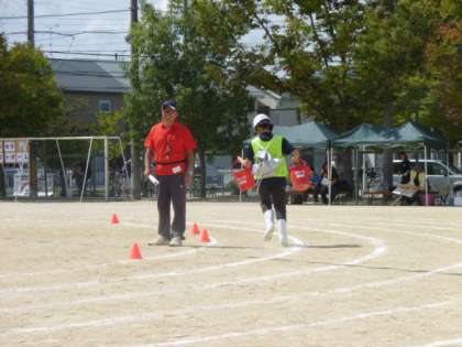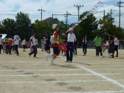 午前中最後の競技は「それ急げ,防災リレー」です。教職員も奮闘しましたが,地域の方々の素晴らしい連係プレーには,歯が立ちませんでした。