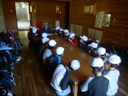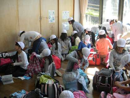 入所式のあと、宿泊棟に向かいました。場所を確認し、昼食の準備をしています。