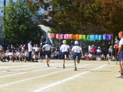 高学年ともなると,走りにたくましさが感じられます。最後まであきらめず,優勝をめざして一人一人が走り切ります。