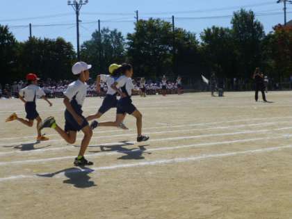 力強く走る姿は,低学年の子どもたちにとってあこがれです。きっと,6年間の思いをこめてゴールをめざしています。