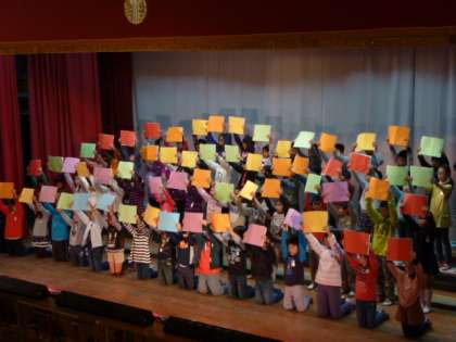 午前中最後の演目は,4年生の朗読劇「葉っぱのフレディ」です。自分が生きているということにはどんな意味があるのだろう…。4年生は,難しいけれどとても大切なテーマのお話に挑戦しました。